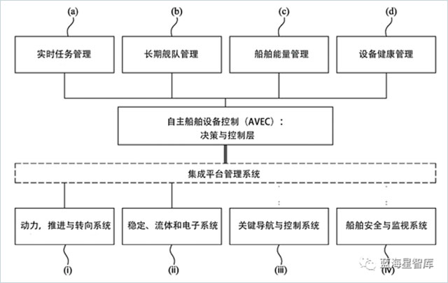“人工轮机长”是一种可实现无人驾驶水运船舶自动化操控的自主控制系统,可根据人工输入的船舶任务计划,编制满足任务计划的船舶机械配置方案(如发动机形式、动力系统配置、推进器配置等),并根据任务计划和最终选择的配置方案操控船舶。“人工轮机长”运行过程中,其自主船舶设备控制(AVEC)系统会持续不断地与船舶上各种机械与电子系统通信,以获取各项数据,再根据实时任务管理系统、长期舰队管理系统等约束条件,生成控制命令,操控船舶。AVEC系统同时还可以不断评估船舶的机械状态和健康情况,在发生机械故障等问题时,生成解决方案,以减轻故障对任务计划的影响。