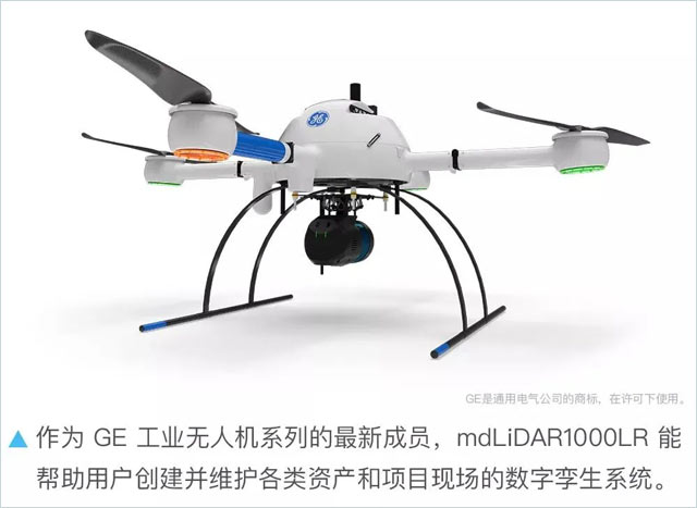 7月7日,通用电气(GE)和 Microdrones(中文名:镁科众思)开启了全球许可合作伙伴关系。根据约定,Microdrones 将面向全球市场推广 GE 工业无人机系列,为专业人员提供强大的航测技术,GE 工业无人机系列结合了两家高度互补的工业公司的优势。这项战略将推动 Microdrones 测量设备加速发展,成为创建和维护数字孪生、数字地形模型、地图和其它空间地理产品的关键工具。